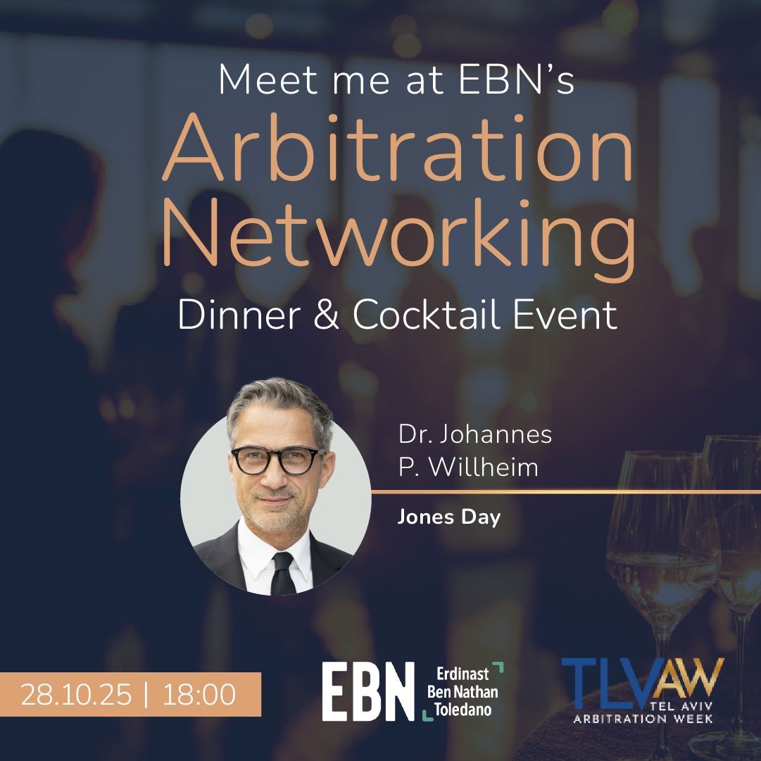 I am honored to discuss „The Role of Arbitration in Post-war Conflict Resolution“ at the Arbitration Networking event hosted by EBN during this year’s edition of Tel Aviv Arbitration Week.